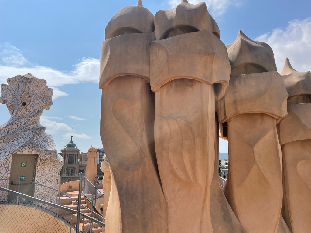 This was another Gaudí design inspired by nature. The boney shell of the building’s exterior in the Eixample part of Barcelona beckoned the few tourists who braved the Covid risks at the time. We purchased tickets to the rooftop, which was a short elevator ride to our first stop on the Casa Milà tour.