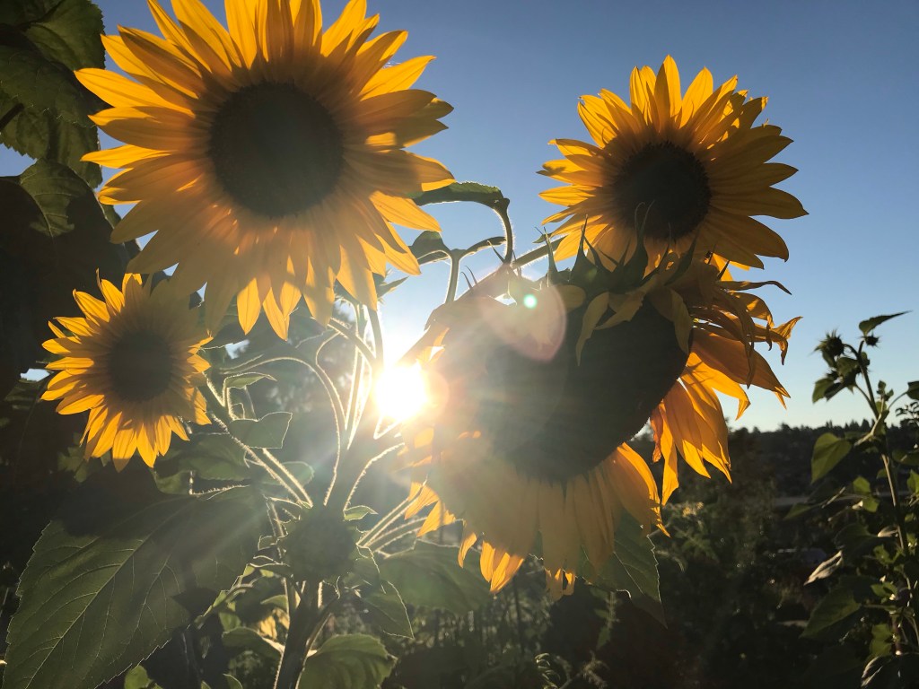 The dinner plate sized heads of my sunflowers are beginning to droop. The yellow petals that fringe their seeded faces have curled inward much like the haircuts found on sculptures of Roman emperors. Unlike the Roman statues, they are wilting. However, further down on their sturdy stalks are smaller versions of themselves. Their offspring that have not served the overhead sun for quite so long. The bees seem not to care though. They love them all.