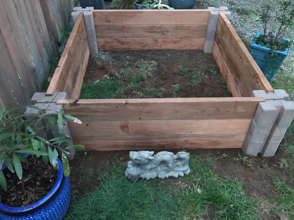 That’s it. Just sticks and stones. And a measuring tape. And about 3 separate trips to Lowe’s, a bit of rearranging, a shovel, and minimal profanities. And Voilà! A garden bed!!