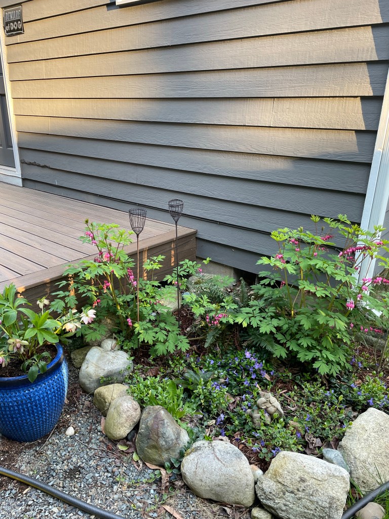 I wasn’t supposed to have a sunflower.  I didn’t plant any.  In the several gardens I’ve called my own, I’ve made mistakes.  I’ve pulled weeds that were actually flowers.  I’ve let weeds have their way.  I’ve experimented with propagation and plant/shrub relocation too.  One thing it’s taught me is that it’s okay to just take a breath and wait and see.  Sometimes the weeds are actually Western Bleeding Hearts.  The beautiful little purple bleeding hearts that love partially shaded gardens.